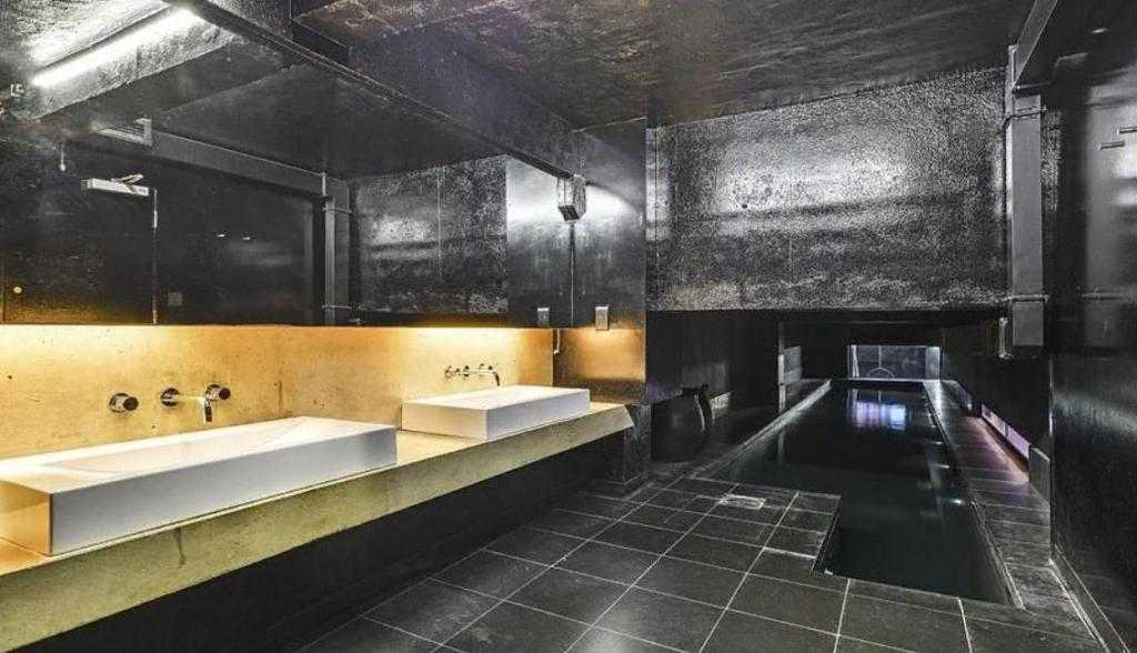 Недвижимость имеет три спальни с необычными акцентами. В главной спальне расположен узкий и закрытый бассейн. Имеется баня с парной. Ни одной белой плитки в поле зрения. Все выложено серой плиткой, потолки выкрашены в черный цвет, как и стены. Эта необычная жилплощадь продается за 65 млн рублей и исключительно через крупных опытных агентов.