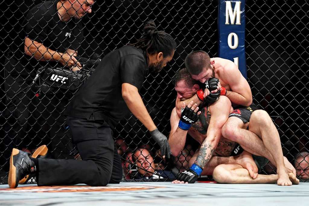 В ходе четвертого раунда, Хабиб сумел провести успешный болевой прием на челюсть, который вынудил Конора сдаться.