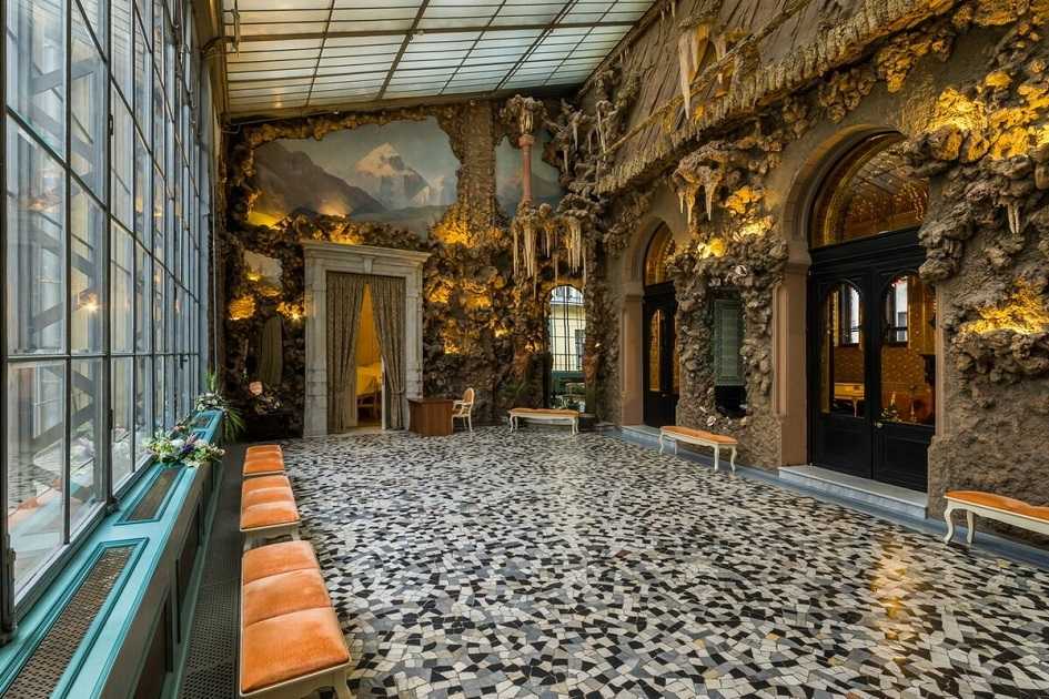Зимний сад со стеклянным потолком, выполненный в виде причудливого грота. Сейчас здесь проходят вечера камерной музыки.