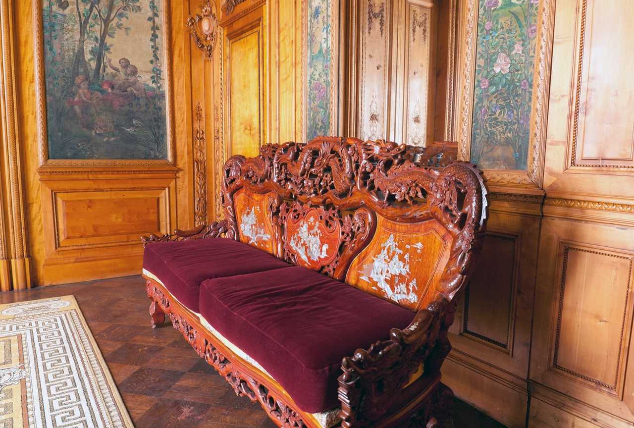 Так появилась великолепная мавританская гостиная с арабесками и гербом фон Дервиза, больше похожая на дворец какого-нибудь восточного правителя. Великолепием дышала Кленовая гостиная, оформленная в стиле Людовика XVI, с резными панелями и шелкографией Пенона на стенах.