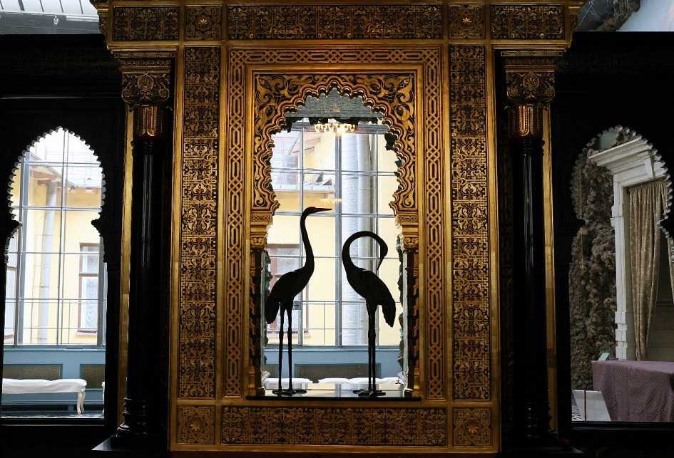 Шрейбер уделил большое внимание интерьерам: в них модерн переходил в ампир, елизаветинское барокко – в классицизм, который неожиданно терялся в роскоши мавританского стиля