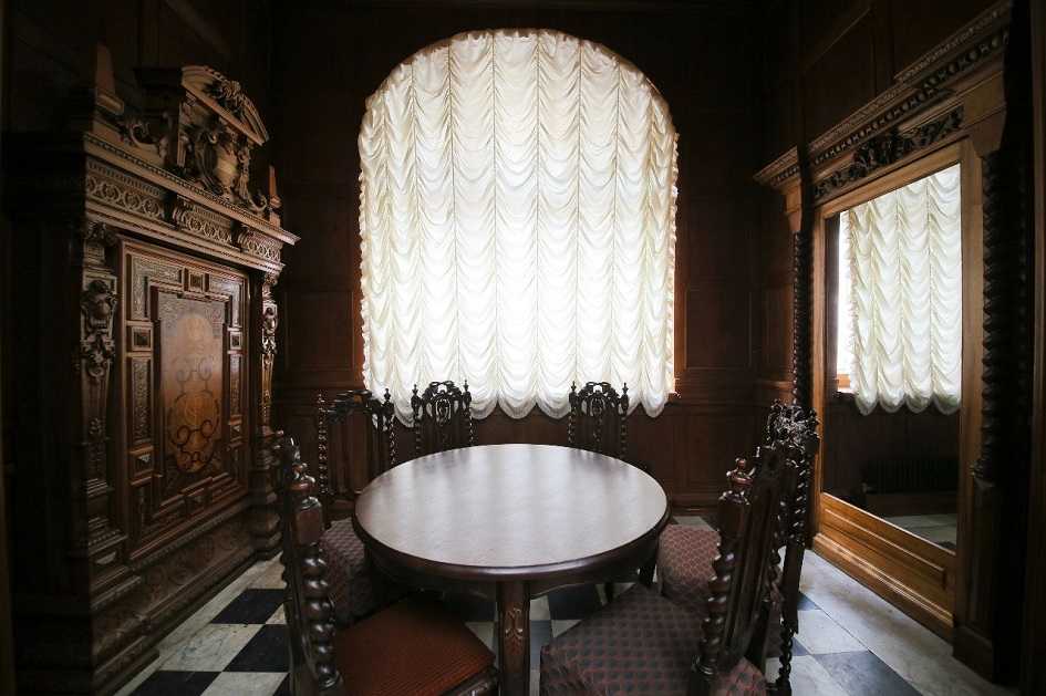 Здесь находится настоящий буфет конца XIX века – результат творчества талантливых столяров, а дизайн был проработан самим архитектором Шрейбером. Венчает буфет крылатый шлем – символ гильдии, к которой принадлежало семейство Визе, когда проживало в Ганновере: напоминание для потомков о корнях фамильного генеалогического древа.