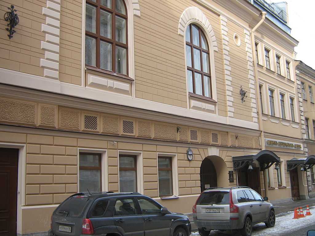 Судьба обычного доходного дома кардинально изменилась, когда барон решил его перестроить. Архитектор Пётр Павлович Шрейбер возвёл здание в стиле модерн. Для нового владельца зодчий перестроил здания по Английской набережной и по Галерной улице, объединив их общим фасадом, превратив в сказочный дворец.
