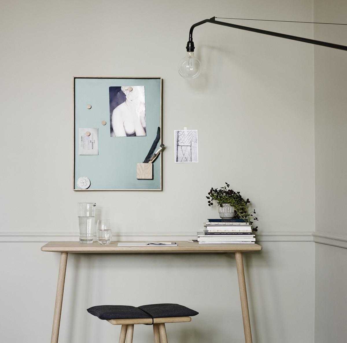 Если вы решили создать доску для заметок своими руками в минималистический интерьер, откажитесь от обрамления основы. Просто вырежьте кусок фанеры и выкрасьте вышеуказанным составом.