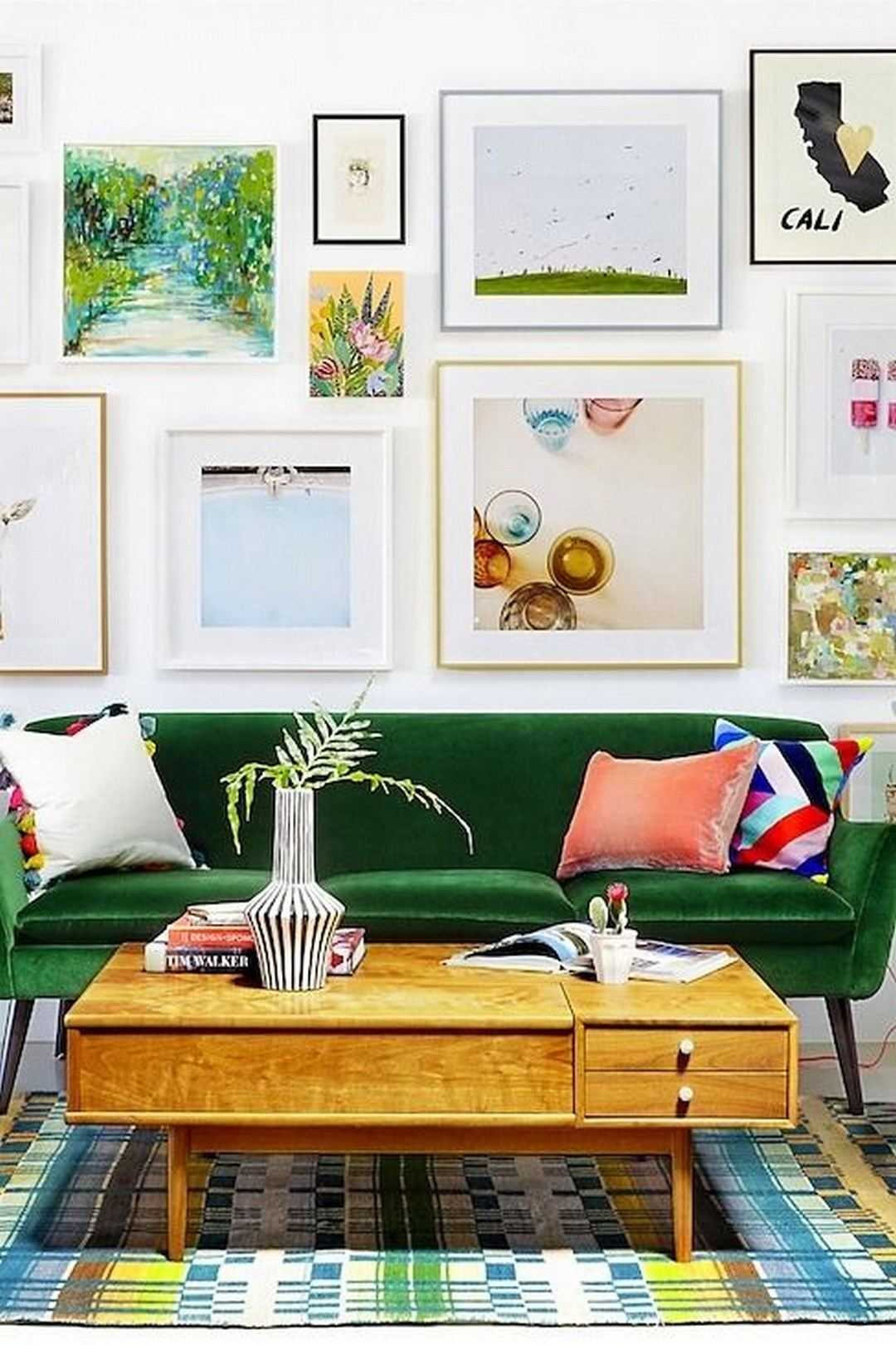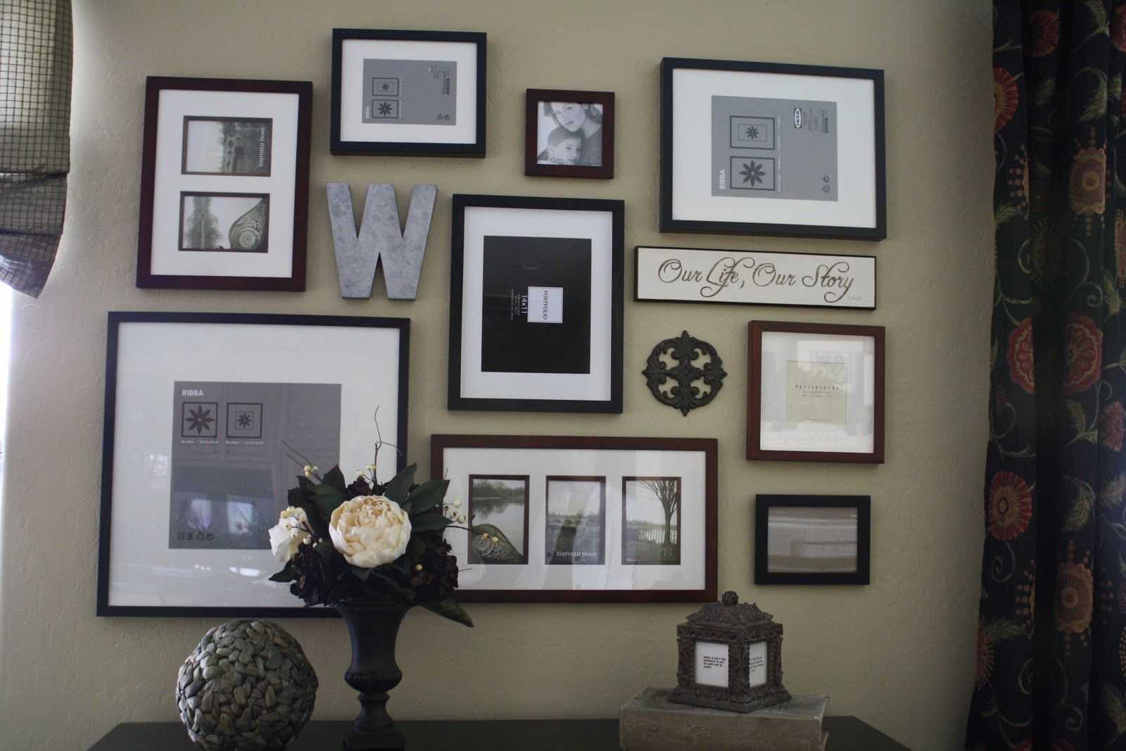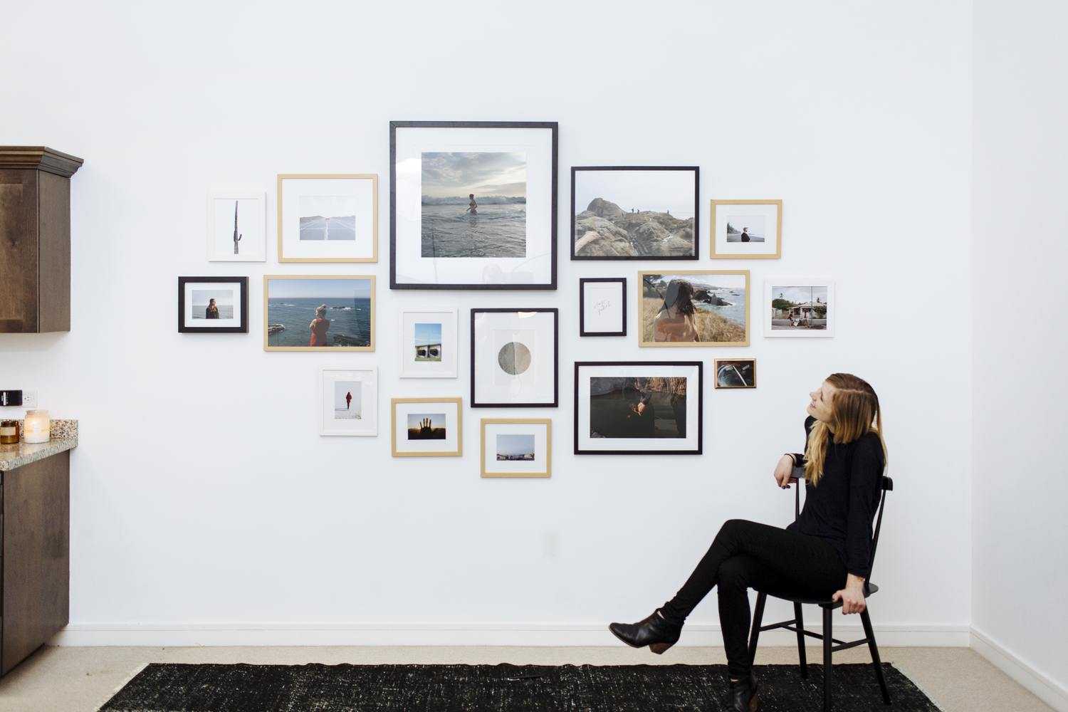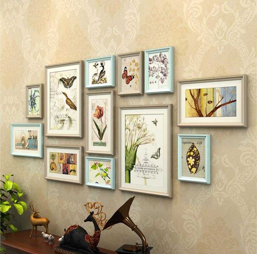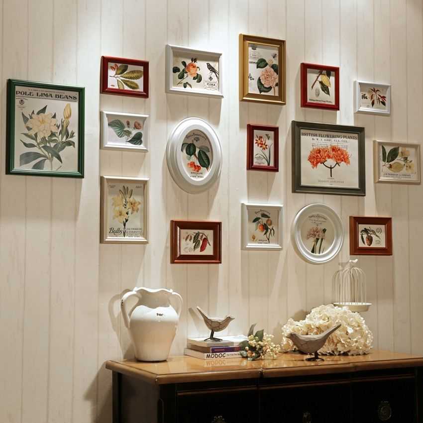 Чтобы отвлечь внимание от бледной стены, подойдут снимки любого размера, даже если не соблюдаются никакие требования относительно отступов и симметрии