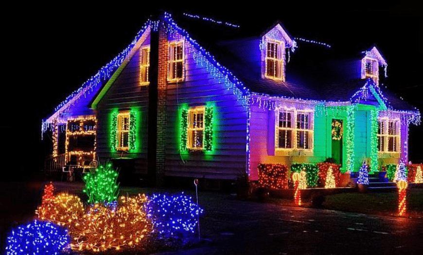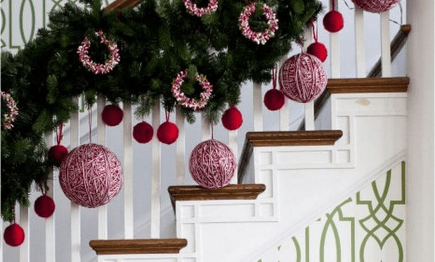 Для создания праздничной атмосферы используют новогодние декорации не только внутри жилища. В частных домах украшают деревья, растущие во дворе, ограждения. В городской квартире не забывают о лестничных площадках, подъездных окнах, перилах, входных дверях.
