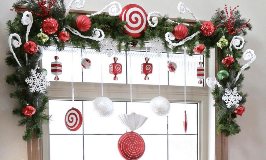 Использование свечей считается традиционным для зимнего декора. Красиво смотрятся композиции из свеч. Их выставляют на отдельную полку в несколько рядов. Иногда такую композицию подвешивают к потолку. Но нужно проследить за соблюдением правил пожарной безопасности, кроме того, воск не должен капать вниз.