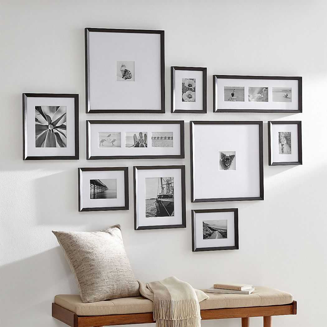 Стиль модерн, хай-тек или эклектика предпочитают металл или пластмассу в обрамлении фотографий.
