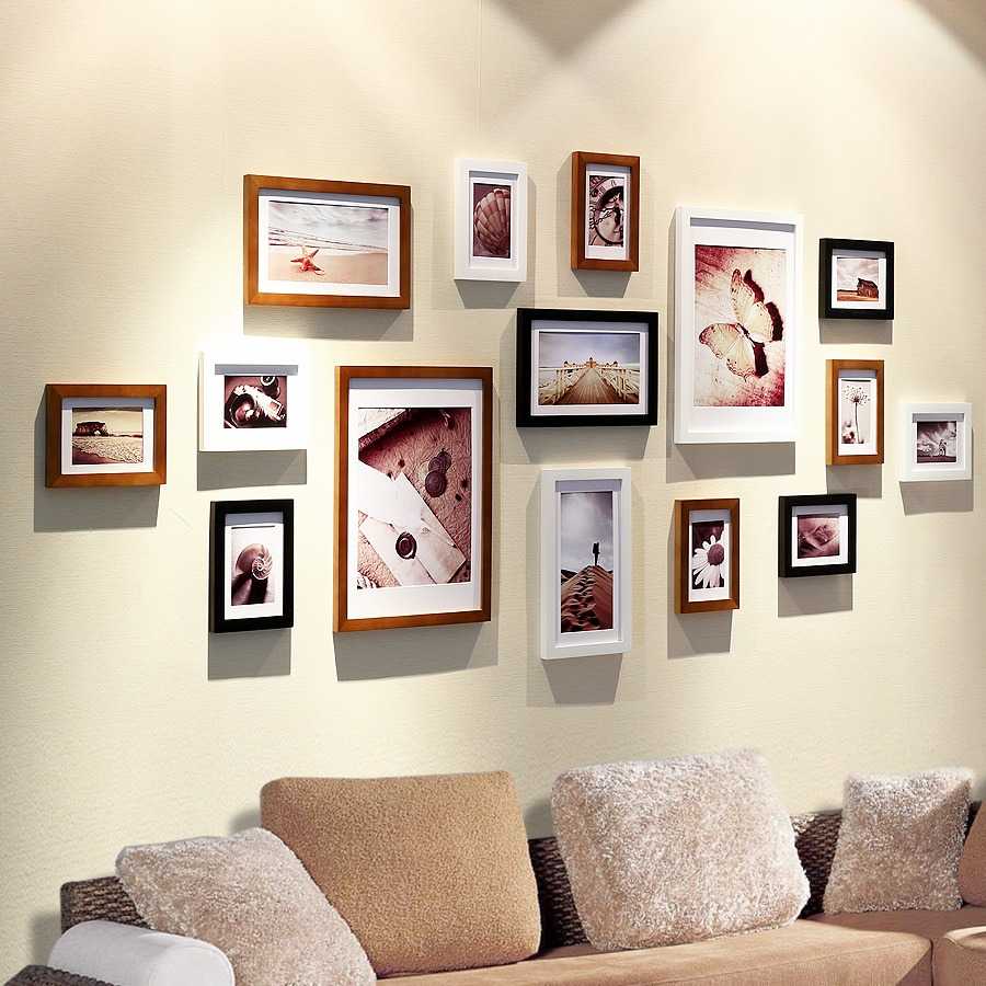 Привычным украшением интерьера стали композиции из нескольких фотографий. Рамки для таких коллекций подбирают в зависимости от стиля и назначения комнаты.