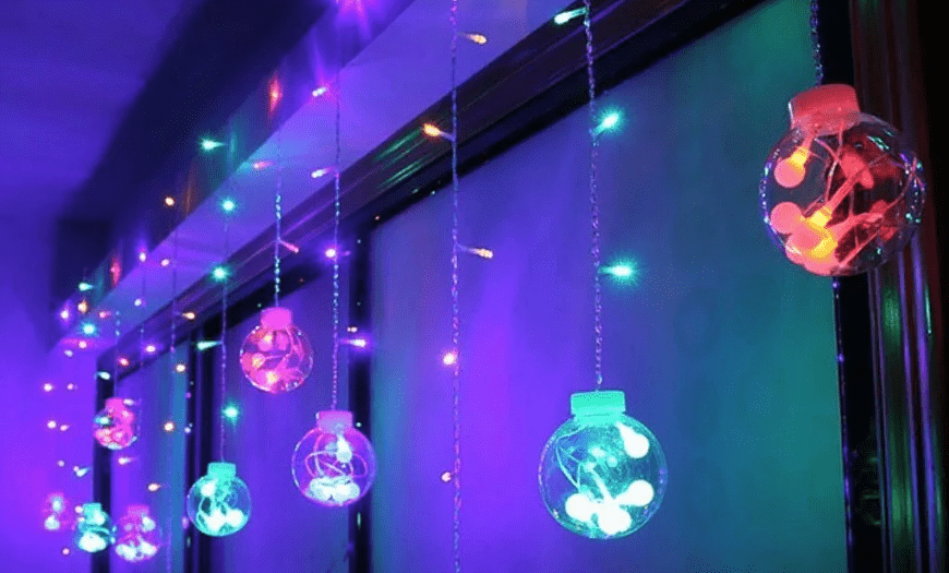 Если поместить гирлянду в стеклянную емкость, например, банку или вазу, получится оригинальный ночник. При этом необходимо позаботиться о безопасности, проверить целостность проводов и наличие нагрева прилегающего материала.