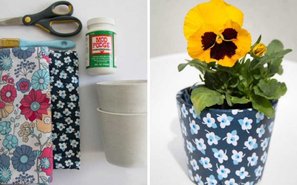 Декорирование цветочных горшков с помощью ткани позволяет создать удивительно красивые элементы интерьера. Лен и мешковина органично впишутся в стилистику стиля «кантри», а шелк и органза подойдут для романтического стиля.