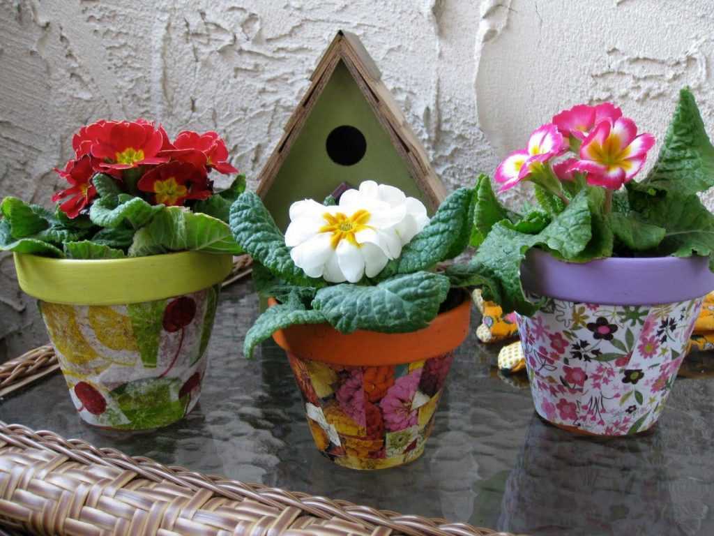 Декоративные горшки дают большие возможности для творчества. Их можно расписывать, украшать декупажем, лентами, тканью, фурнитурой, делать их из разного материала и придавать самую необычную форму.