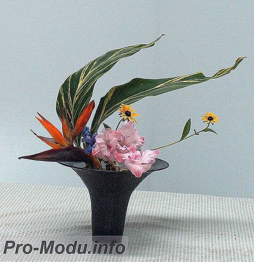 Самое главное в этом стиле передача цветов, эмоций и даже добавленных украшений. В стилях очень важны и вазы-какого цвета, какой формы. От вазы зависит стиль и красота икебаны. В Японии искусству икебаны обучали каждого школьника. Таким образом их учили выражать эмоции, передавать настроение, видеть в округе только прекрасное! В течении 25 лет икебана была самым популярным увлечением во всей Европе, и Россия, Беларусь не исключение. В феврале 1968 года при общей дружбе *СССР-Япония* впервые была построена Московская школа икебаны. Не смотря на то что Японская традиция перестала пользоваться большой популярностью, именно клубы икебаны вырастили первое поколение российских флористов. Главное в композиции не красивый цветок, а линия. Прямая линия создаёт ощущение краткости, силы и лёгкости. Изогнутая создаёт ощущение энергичности, движения и очертания форм. Цветы и различные плоды, собранные вместе, придают ощущения объёмности и цветовой насыщенности.