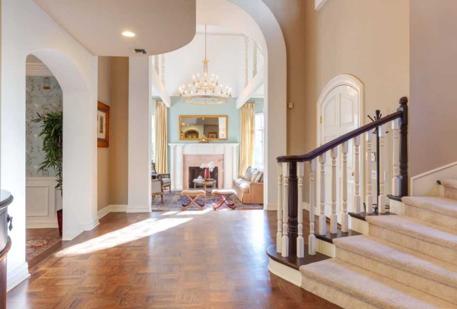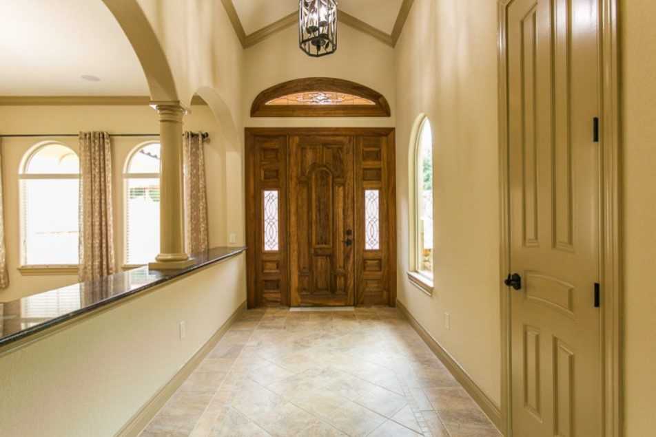 Просто идеально выглядит на этом фото арочный проем из коридора в холл. Конечно, натуральный камень стоит недешево, укладку должен выполнять специалист с большим опытом работы. Да, затраты достаточно высоки, но посмотрите какой красивый арочный проем у вас получится в итоге. Искусство требует финансовых жертв.