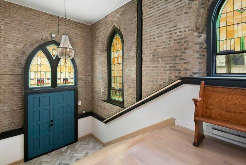 Вариант 4. В проем достаточной ширины можно вмонтировать арку, изготовленную из деревянного каркаса и витражного стекла. Выглядит такая конструкция легко и нарядно. Она пропускает свет и визуально расширяет пространство. В данном примере форма арки повторяет форму окна, но является главным акцентом.