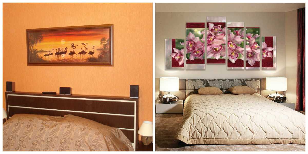 Картины в спальне нужно повесить в непосредственной близости к кровати. Не стоит вешать у изголовья. Считается, что этим вы только усилите поток мыслей в голове и вас будет мучать бессонница.