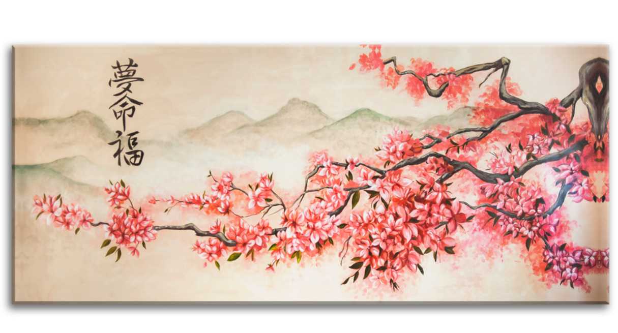 Сакура – это не только символ успеха в делах, но и обновления. Картины с её изображением приносят в дом новую положительную энергетику. Типичные восточные пейзаже нередко дополняются изображением гор, лишь усиливающих положительное воздействие. Подобные пейзажи рекомендуется вешать в кабинете за спиной.