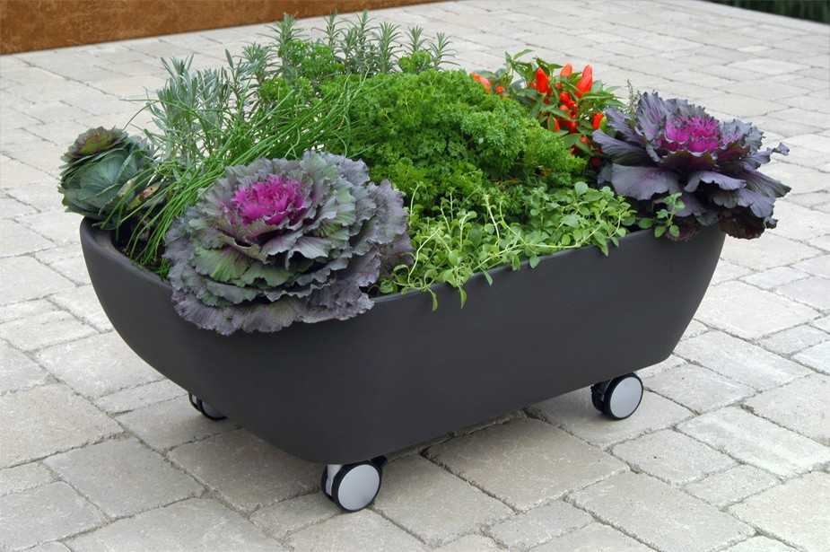 Более практичные и запасливые дачники смогут проявить верх смекалки, использовав не по назначению даже ванны! Да-да, вы можете прикрепить к ножкам колесики, наполнить ее землей и высадить туда любые цветы, получив веселую передвижную клумбу.