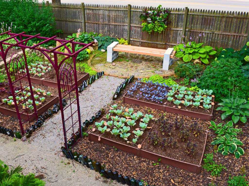 - декоративного огорода. Создается из цветочных композиций и овощных культур. Цветы в таком случае высаживаются в виде узоров и орнаментов;
