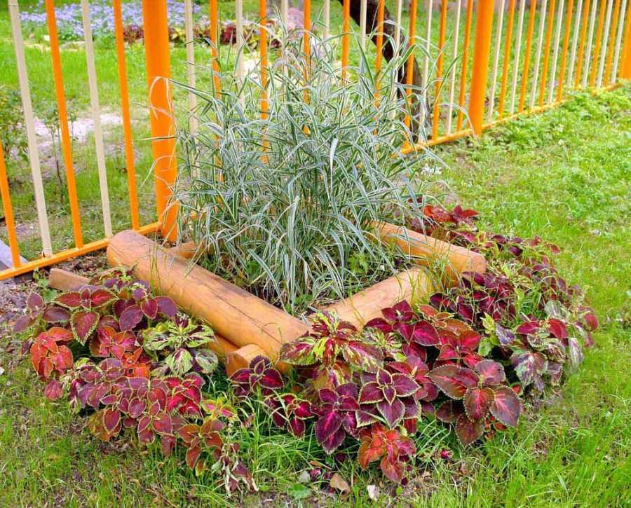 Красивые композиции создают ландшафтные дизайнеры из простого обрезка толстого ствола дерева, уложенного на бок. У каждого есть возможность попробовать воссоздать изящный цветник самостоятельно.