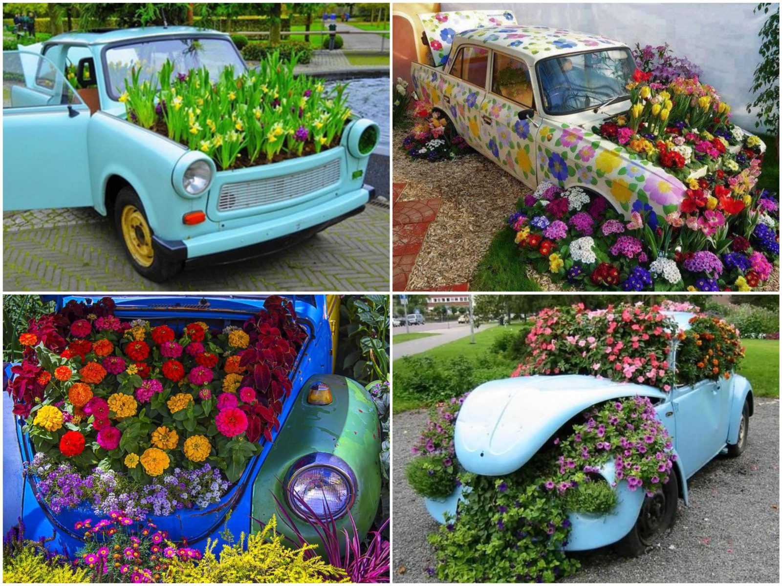 Кузов автомобиля, больше неспособный служить нам верным и надежным транспортом, легко превращается в целую цветочную инсталляцию.