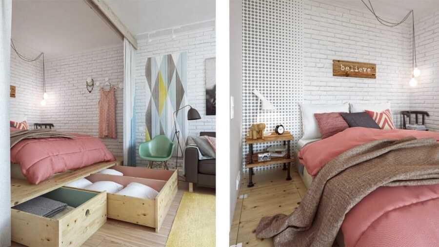В небольшой комнате необходимо грамотно продумать разные зоны для комфортного жилья. Помимо эстетичности, эти зоны должны быть функциональными и практичными. В таком помещении необходимо выделить кухонную и столовую зону, ванную комнату, гардеробную, место для сна, отдыха и встречи гостей.