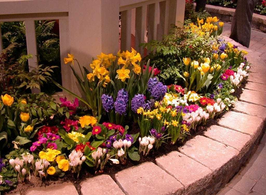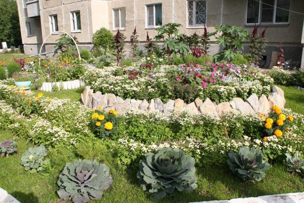 - регулярный цветник – цветение растений начинается одновременно, при этом наполнение клумбы отличается многообразием и размерами;