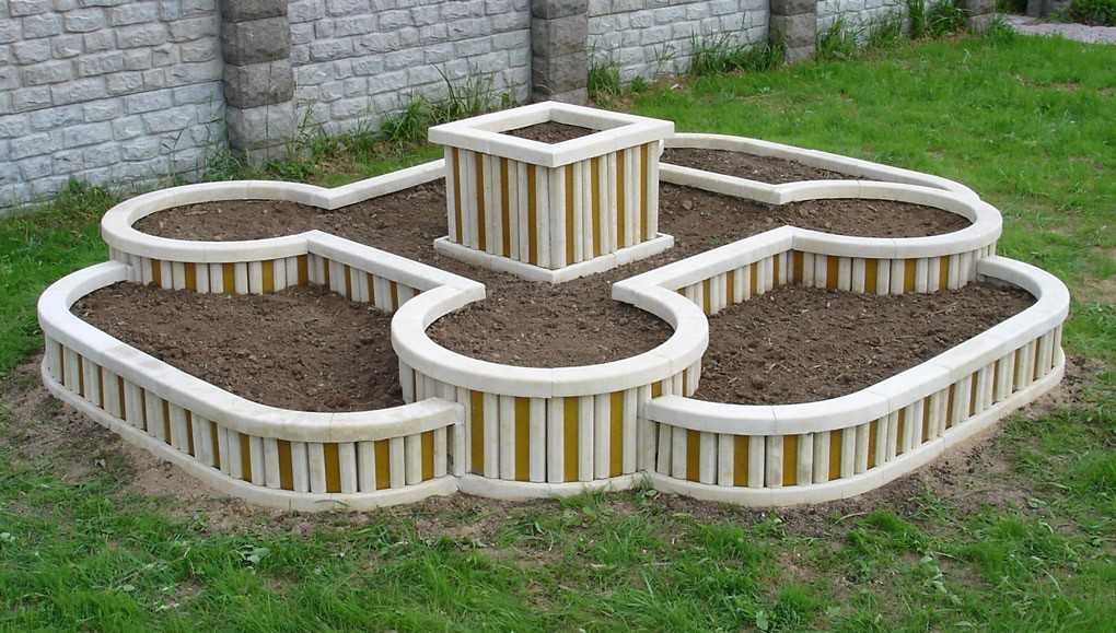 Для клумб-лесенок нужен более прочный бетон, чем для обычного бордюрного ограждения. Чтобы уменьшить итоговую пористость материала можно, добавив в смесь пластификатор. Он улучшает скольжение зерен, делая бетон прочным. Бордюр можно совместить с ленточным ограждением, если нужно ограничить рост корней. Для этого в грунт закапывают полосу из металла или пластика. Глубина зависит от цветов, т.к. корневая система разрастается по-разному. Поверх ленты устанавливаются бетонные блоки.