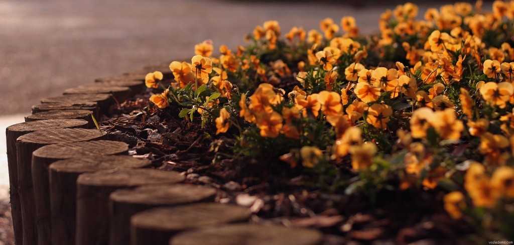 Наиболее простым и популярным материалом для изготовления ограждений безусловно является дерево. Такие изделия всегда уместно выглядят возле клумбы и гармонично ее дополняют. К тому же, деревянные ограждения не нагреваются на солнце и не требуют особых усилий по уходу.