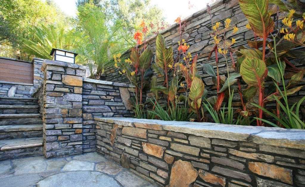 Природный камень отлично смотрится в ландшафтном дизайне. Поэтому его также можно использовать для создания ограждений. С помощью природного камня можно создавать различные формы. Если необходима укладка нескольких слоев материала, необходимо скрепить элементы между собой цементным раствором или специальным клеем.
