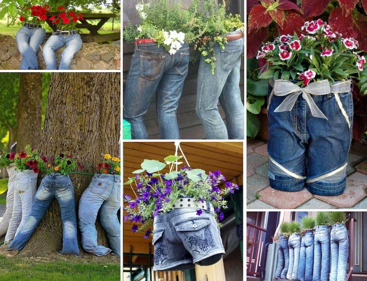 Легко сделать вертикальную клумбу, составив ее из разных емкостей.