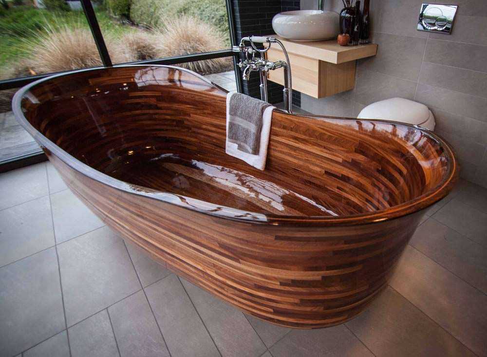 Ванна, раковина из дерева украсят любой интерьер. Для их создания необходимо обладать определенным мастерством, опытом. Такой вид сантехники производится вручную, многажды обрабатывается пропитывающими и покрывающими составами.