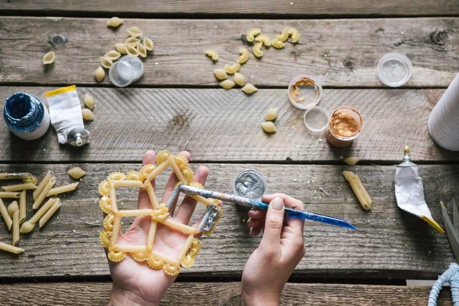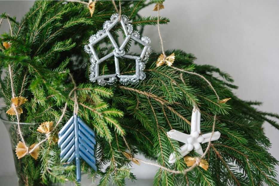 Не многие знают, что различный декор можно сделать буквально из подручных материалов. К примеру, макароны – прекрасный вариант основы для елочных игрушек.