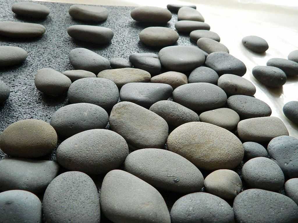 Тем, кто любит массаж стоп, предлагаем сделать оригинальный коврик для ванной комнаты из камней.