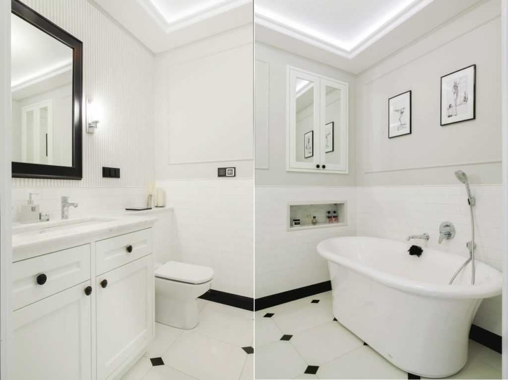 Классическая белая ванная комната вне времени и, следовательно, универсальна, потому что она подходит для любого дизайна интерьера. При выборе ванной комнаты в морском стиле (сочетание белого и разных оттенков синего), ванной комнаты в деревенском стиле (сочетание белого с теплыми коричневыми цветами) или в скандинавском стиле (белый с серым оттенком) вы можете быть уверены, что этот декор не выйдет от моды и долгие годы будет выглядеть очень хорошо.
