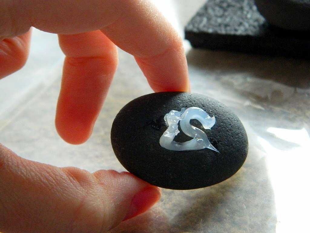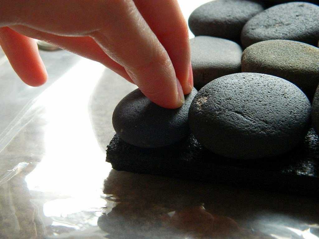 Как только все будет готово, поочередно приклеиваем каждый камень к коврику.