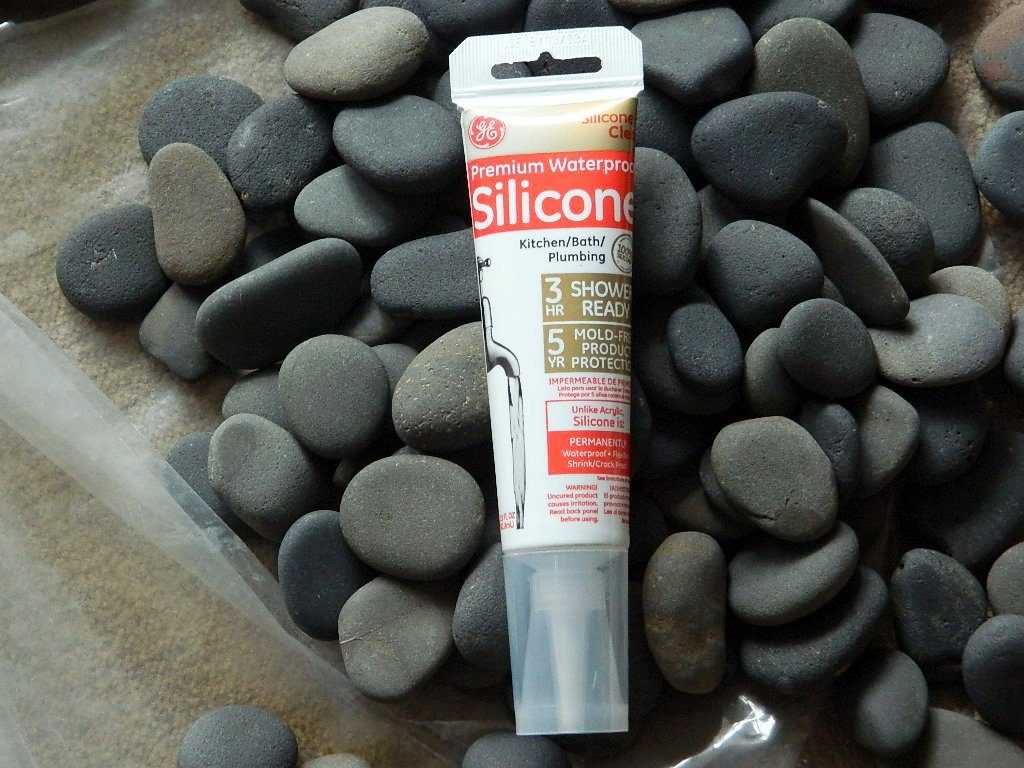 На рабочую поверхность кладем старую шторку, чтобы защитить ее от воздействия герметика. Размещаем самые большие камни поверх отверстий на коврике.