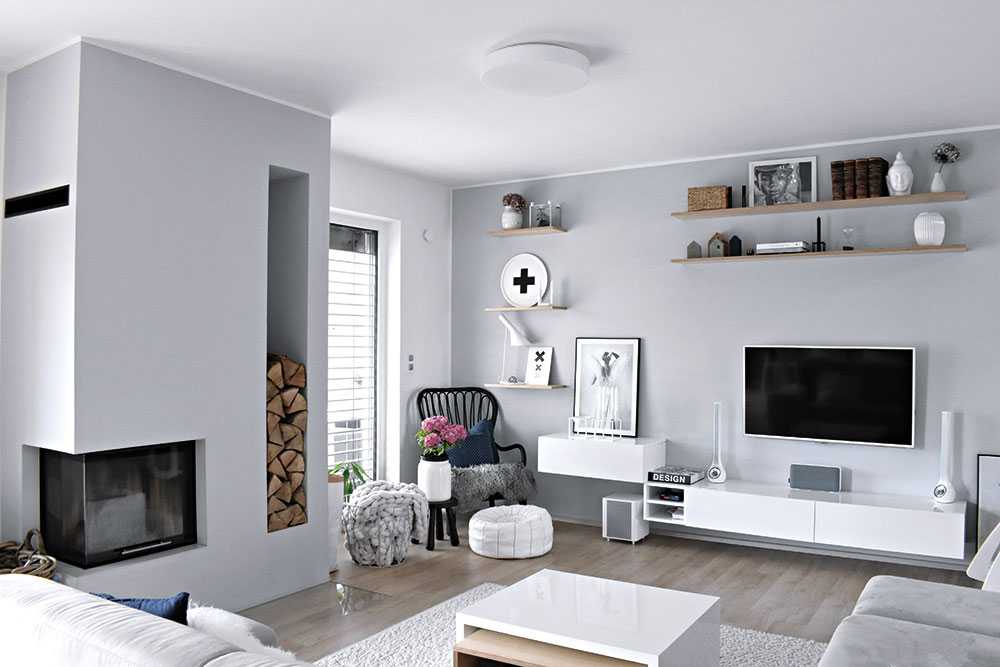 Интерьер в скандинавском стиле в белых тонахИсточник Дизайн гостиных