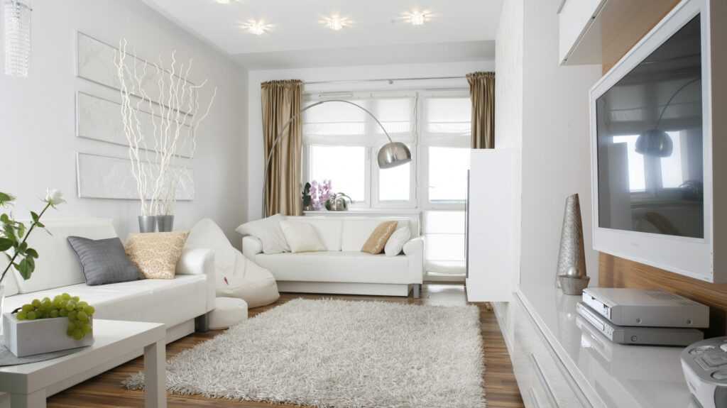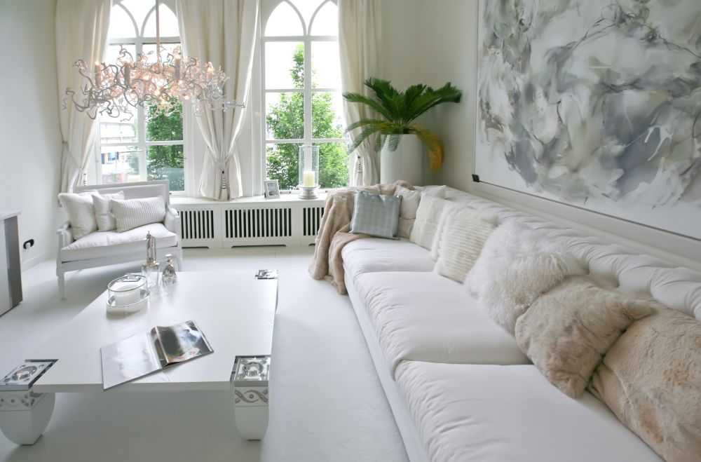 Белый интерьер гостиной может воплощаться в самых разнообразных стилевых направлениях.