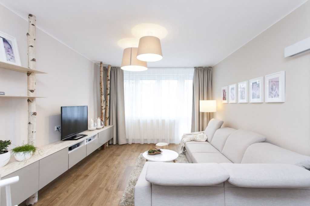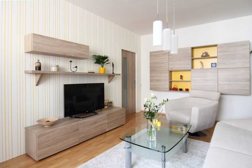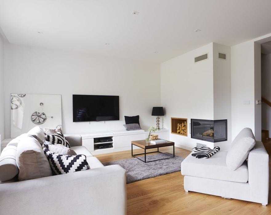 Белые стены — хороший выбор для людей, не имеющих представления, как обустроить гостиную. В сочетании с деревянным полом они создадут практически классическое сочетание. Конечно, эти два элемента можно использовать и в современных интерьерах, они также подойдут для гостиной в скандинавском стиле. Для небольших гостиных отлично подойдет пол из светлого дерева — такая цветовая гамма оптически увеличит интерьер. Если вы выберете мебель подобного цвета, вы получите эффектный и свежий декор для гостиной.