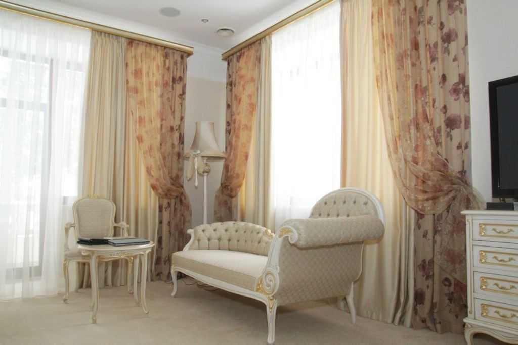 В этом есть один нюанс: не одевайте их в разную одежду, это будет смотреться не симметрично и интерьер потеряет изюминку. Независимо от того, как расположены окна — на одной стене или на разных, они должны быть как близнецы. Даже если вы зонировали свою гостиную и окна находятся в разных функциональных зонах, подберите такой цвет и материал, который будет подходить и той и другой.