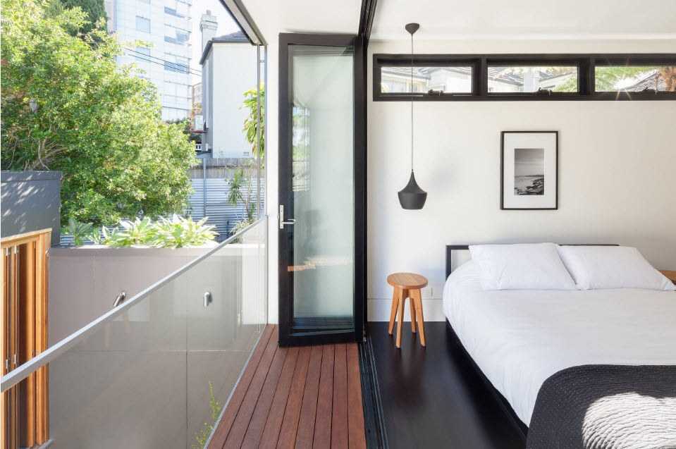 Отличным решением в условиях ограниченного пространства будет слияние спальной комнаты с балконом. Для этого достаточно ликвидировать перегородку между спальней и балконом.