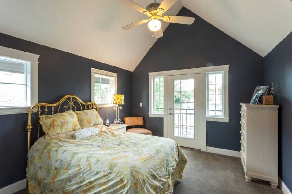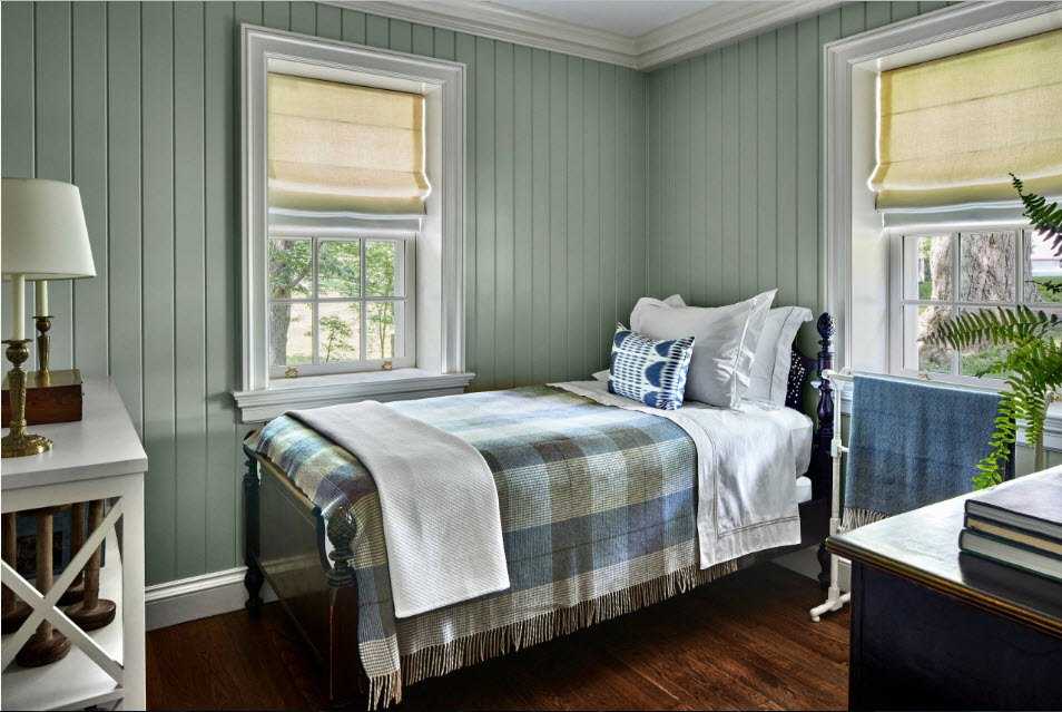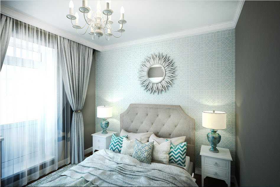 Покрывало для кровати может перекликаться с доминирующими оттенками стен либо пола. На одеяле могут быть небольшой узор геометрической формы. Покрасить стены в разные тона — еще один шаг в сторону исправления геометрии пространства