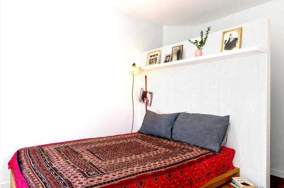 — Комод и стеллаж смело меняй на декоративные полки вдоль стены. Даже прикроватные тумбочки можно заменить на полку, нишу или гипсокартонную конструкцию над кроватью;