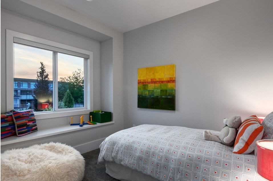 Абсолютно обоснованным решением станет использование преимущественно светлых оттенков, особенно в детской. Светлая однотонная отделка даст возможность декорировать спальное место текстилем с принтом. Такой же узор можно использовать для оконных занавесок.