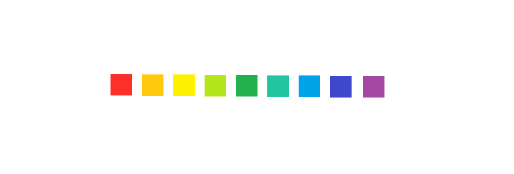 Образцы цветов одного оттенка, но разной насыщенности. Насыщенность каждого оттенка заканчивается серым.