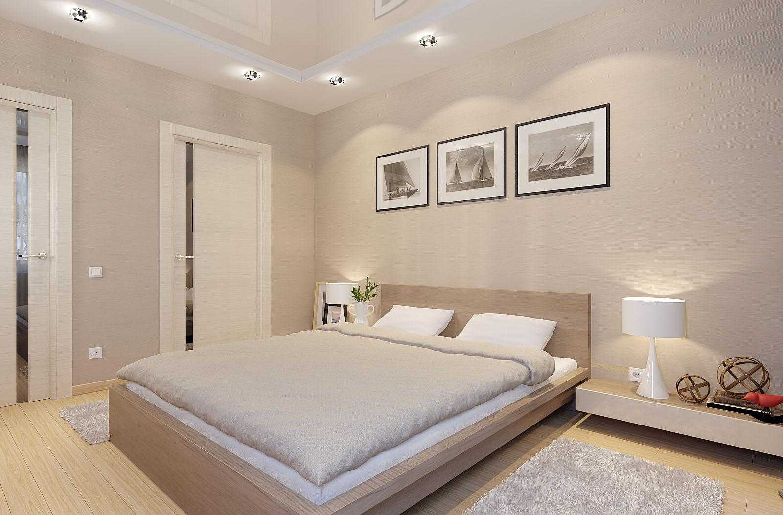 К светлому напольному покрытию и стенам, оформленным в бежевом оттенке, идеально подходят темные полотна. В современном интерьере все чаще можно встретить деревянные модели с интересными по форме стеклянными вставками, которые располагаются горизонтально.