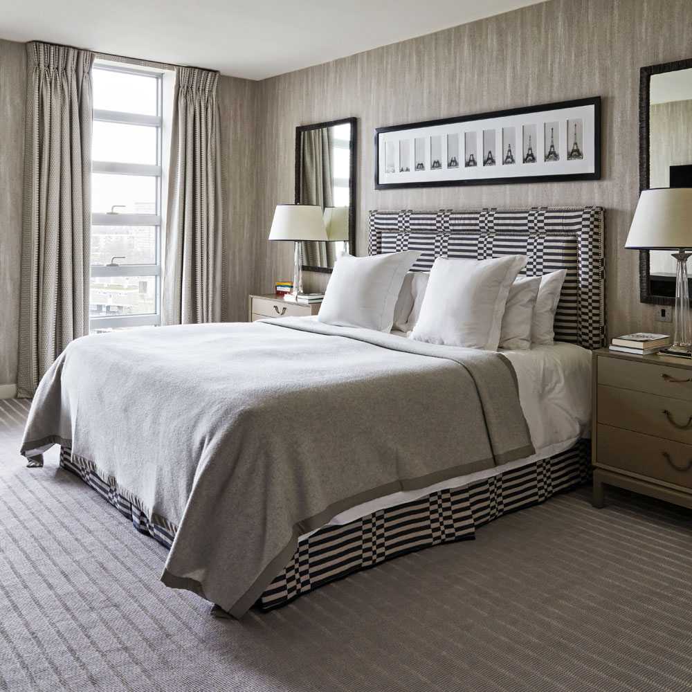 Бежевый и серый — это цвета, которые неотъемлемо связаны с дизайном гостиничных номеров … и это правильно. Людям, которые ценят удобство проживания в отеле вдали от дома, такой дизайн обязательно понравится. Здесь отлично подойдут бежевые стены и кровать с бежевым стеганым изголовьем. Кроме того, несколько светильников светло-бежевого оттенка. На кровати будут идеальны белоснежные простыни покрытые серым лоскутным одеялом, украшенным белыми, серыми и бежевыми подушками.