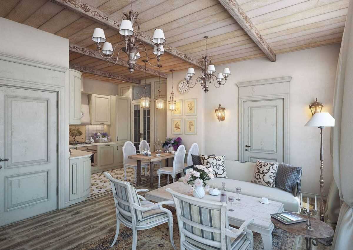 Французское оформление подойдет не только для загородного дома, но и для обычной квартиры. С маленьким помещением есть риск — загромоздить его декором, но этого можно избежать, если использовать только некоторые элементы.