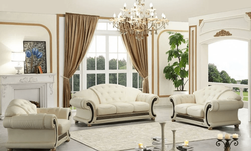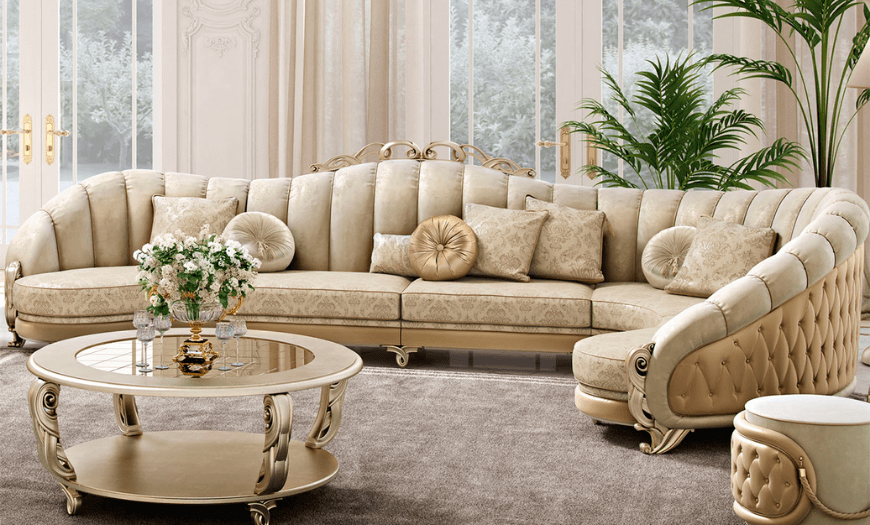 Часто мягкая мебель используются в стиле ар-деко. В нем допускается каретная стяжка и бархатная отделка.